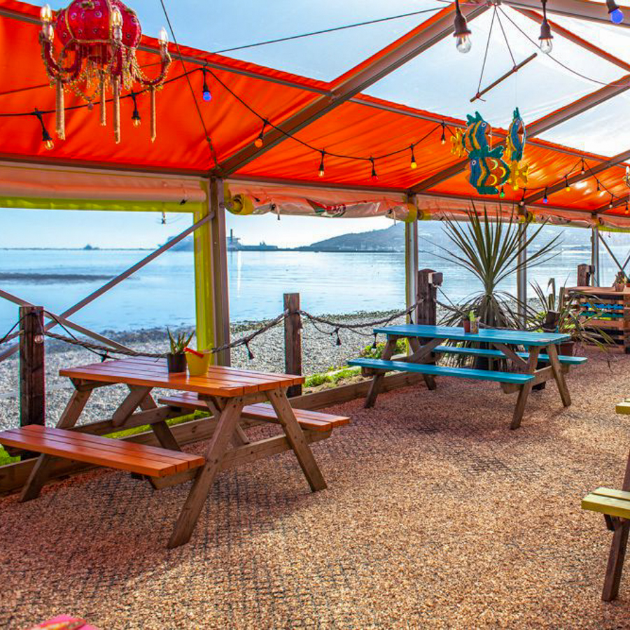 Authentic street-food inspired and served right on the beach. Beautiful views overlooking Portland Harbour with Cocktails and Coffees served all day!