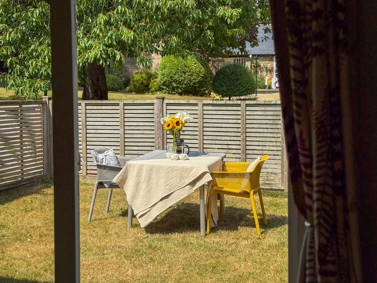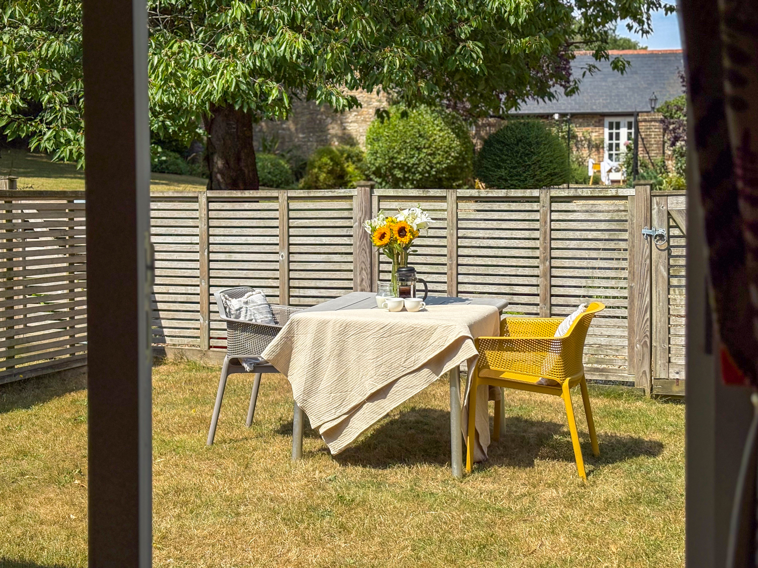 This charming single-storey end-of-terrace cottage blends modern comfort with cottage charm. The open-plan layout includes a fully equipped self-catering kitchen with oven, hob, microwave, and fridge, plus a cosy dining and sitting area with Smart TV and Freeview. French doors open onto a private enclosed garden, perfect for morning coffee or evening relaxation.