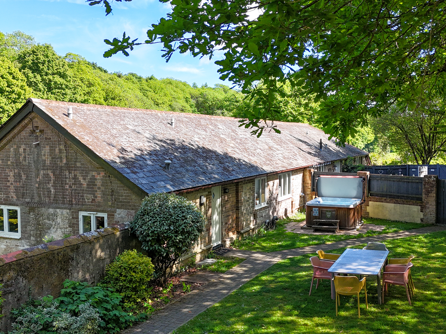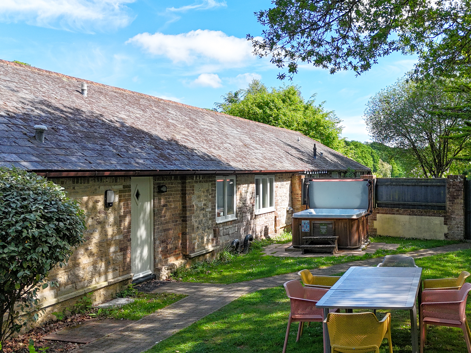 Outside, enjoy a fully enclosed private garden with a hot tub, barbecue, and outdoor dining area, perfect for evening relaxation. Guests also have access to Greenwood Grange’s communal gardens and on-site leisure spaces (See Estate Map).