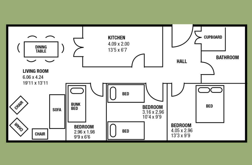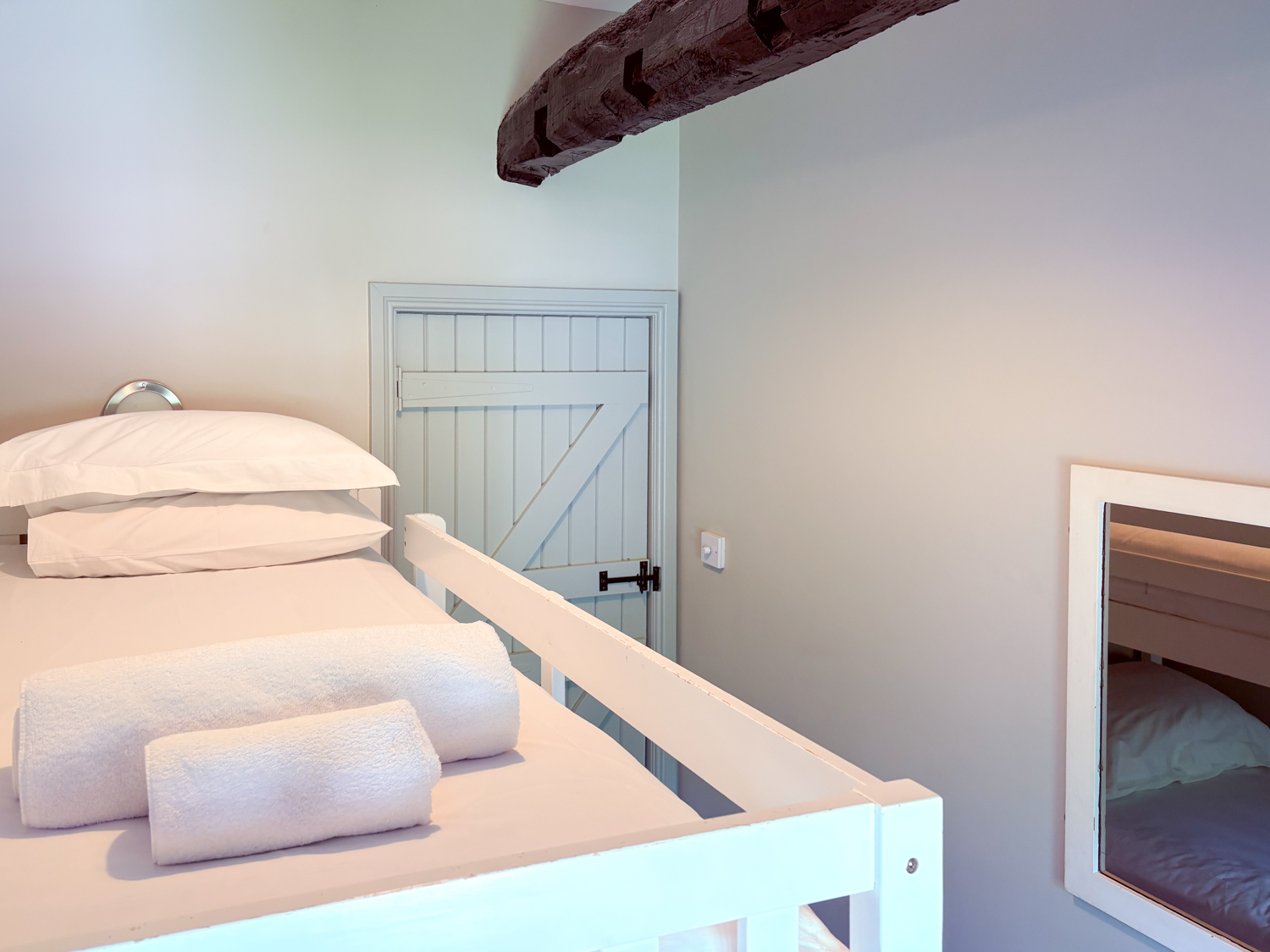 The master bedroom includes a super king-size bed and Smart TV, while the twin room offers zip-and-link beds for flexibility, and a bunk room is perfect for children. There are two modern bathrooms; one with a bath with shower head, designer fittings, basin, and WC; the second with a power shower, WC, and basin.