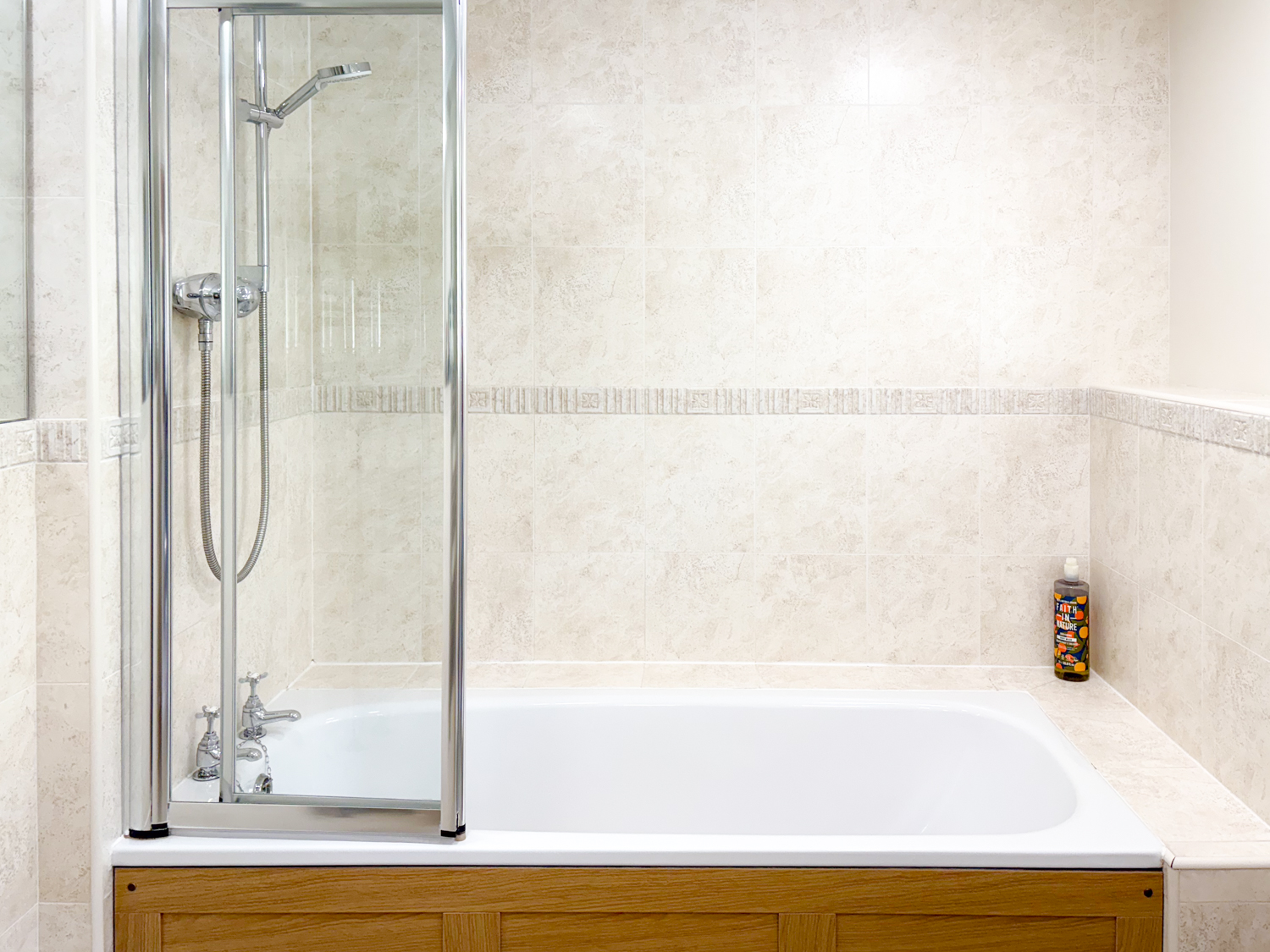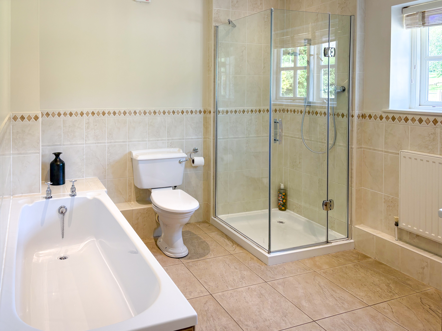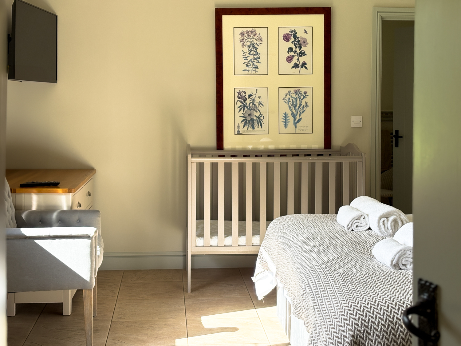 Bedroom 4: superking/ twin bed, 40" Smart TV, modern en-suite with separate bath & shower, cot space