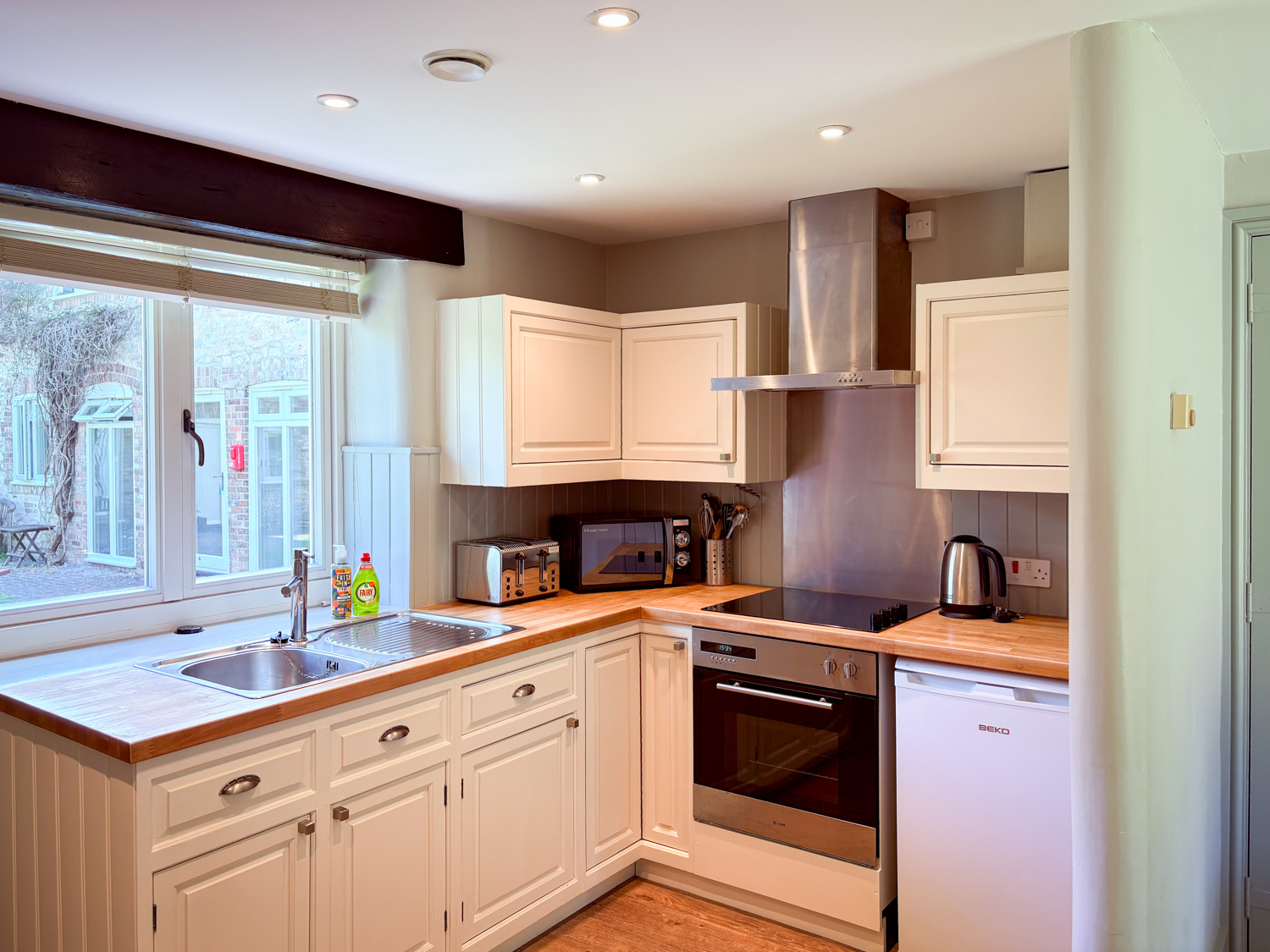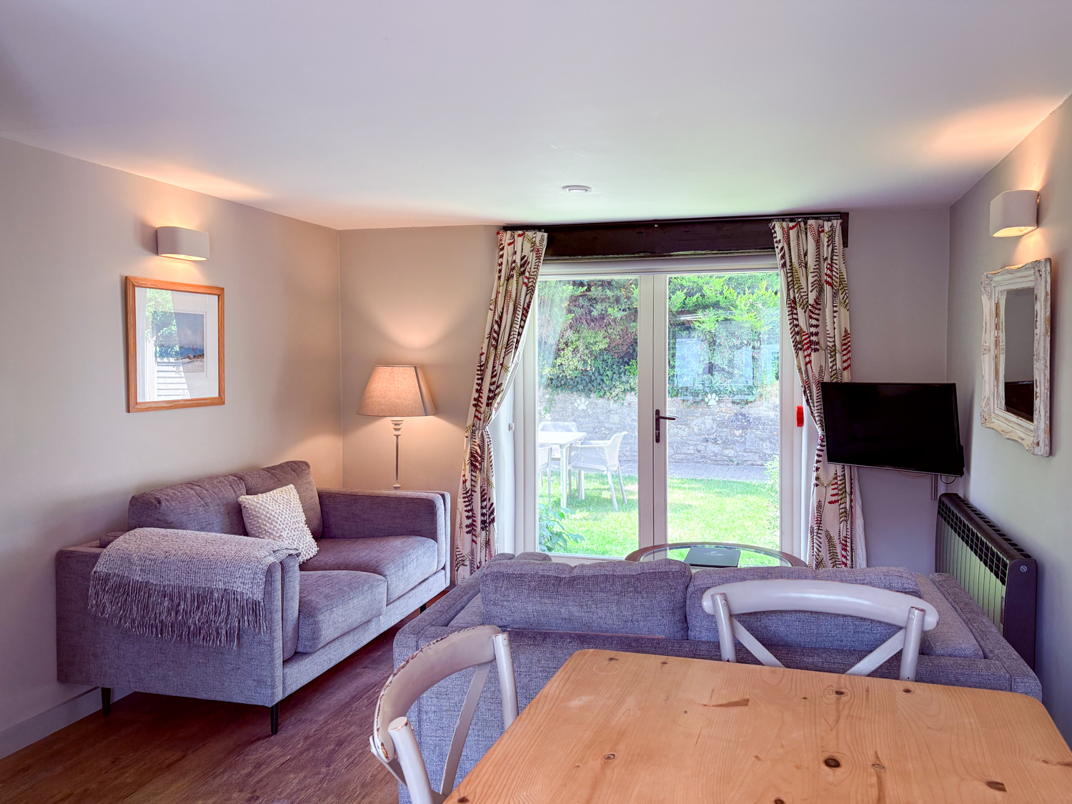 Enjoy an enclosed lawn, private patio, and outdoor dining area — perfect for warm days and evenings in the countryside. Guests can also enjoy full access to Greenwood Grange’s communal gardens, hot tubs, and outdoor leisure areas (See Estate Map).