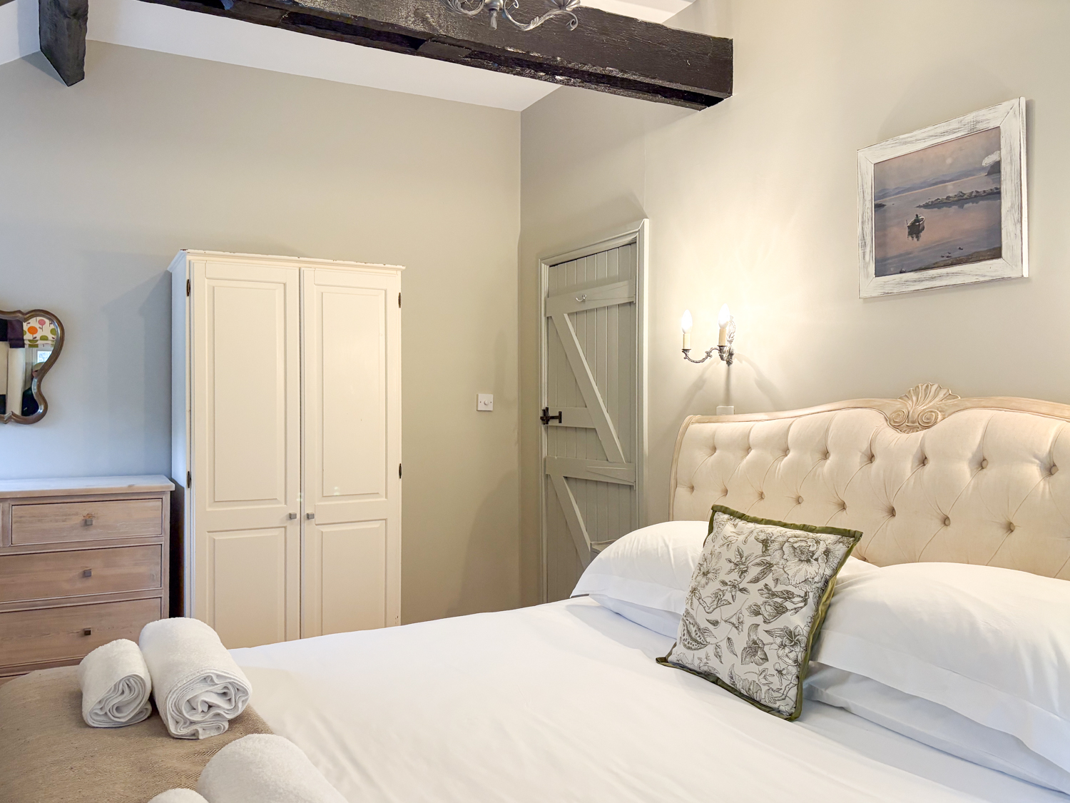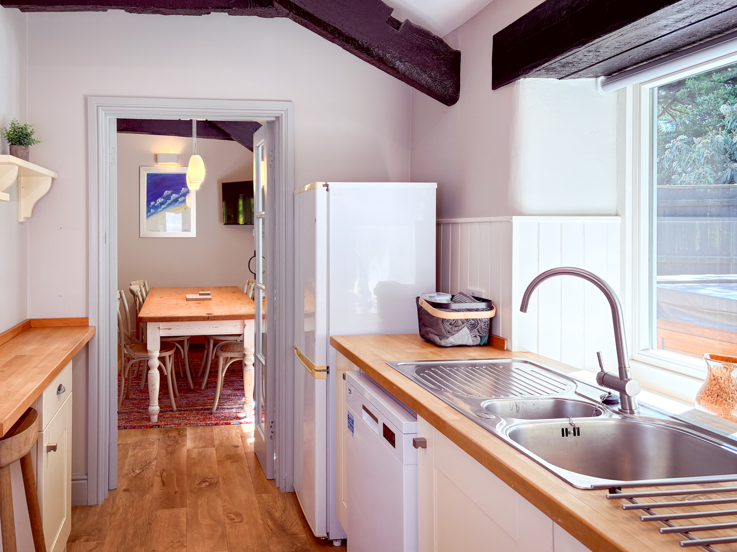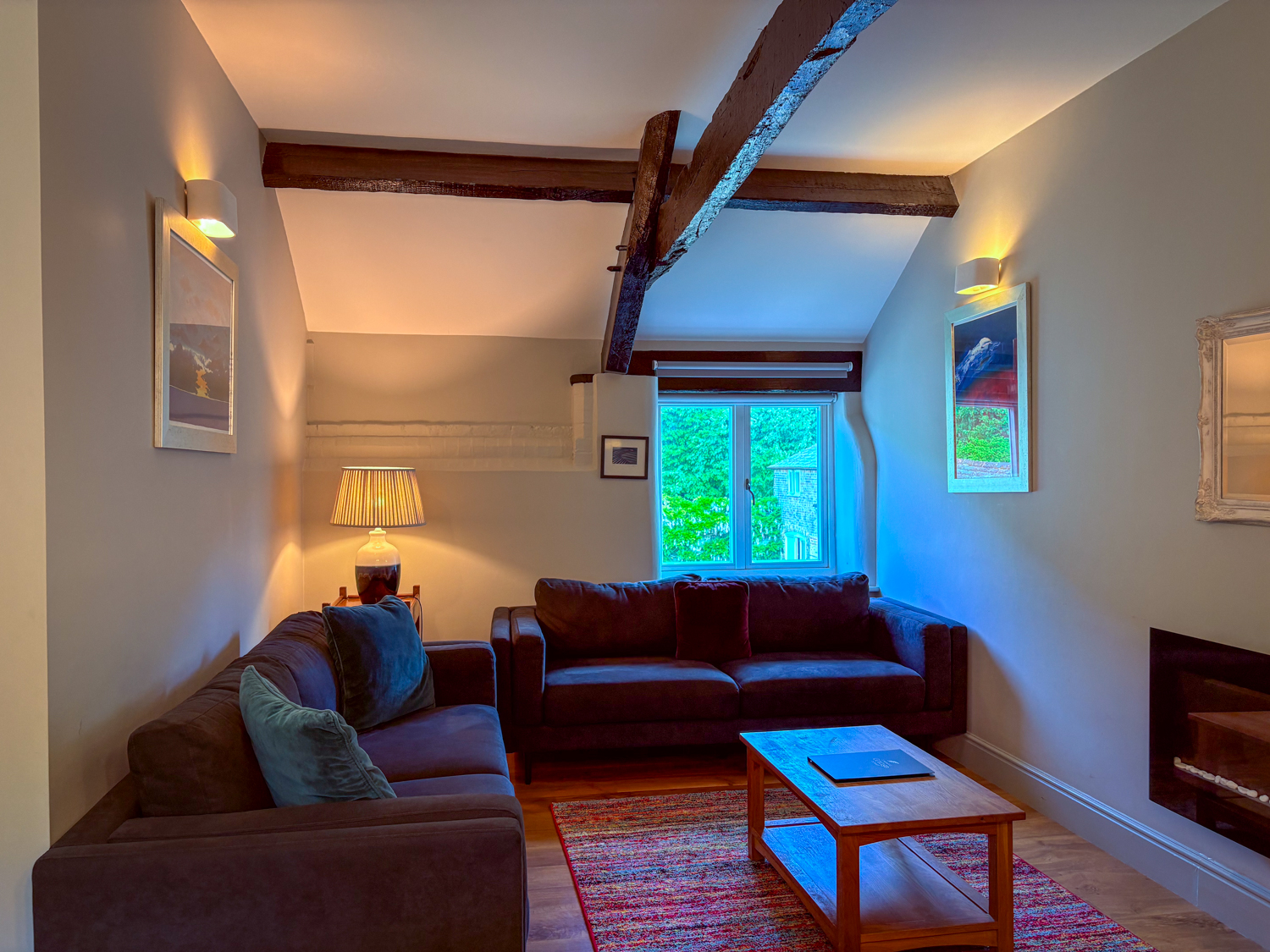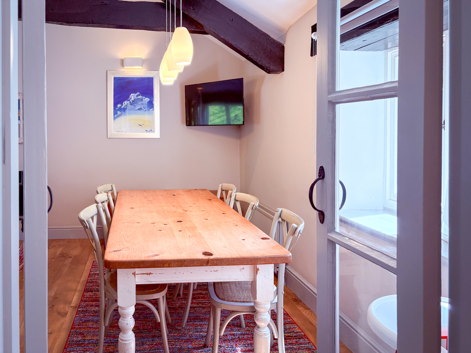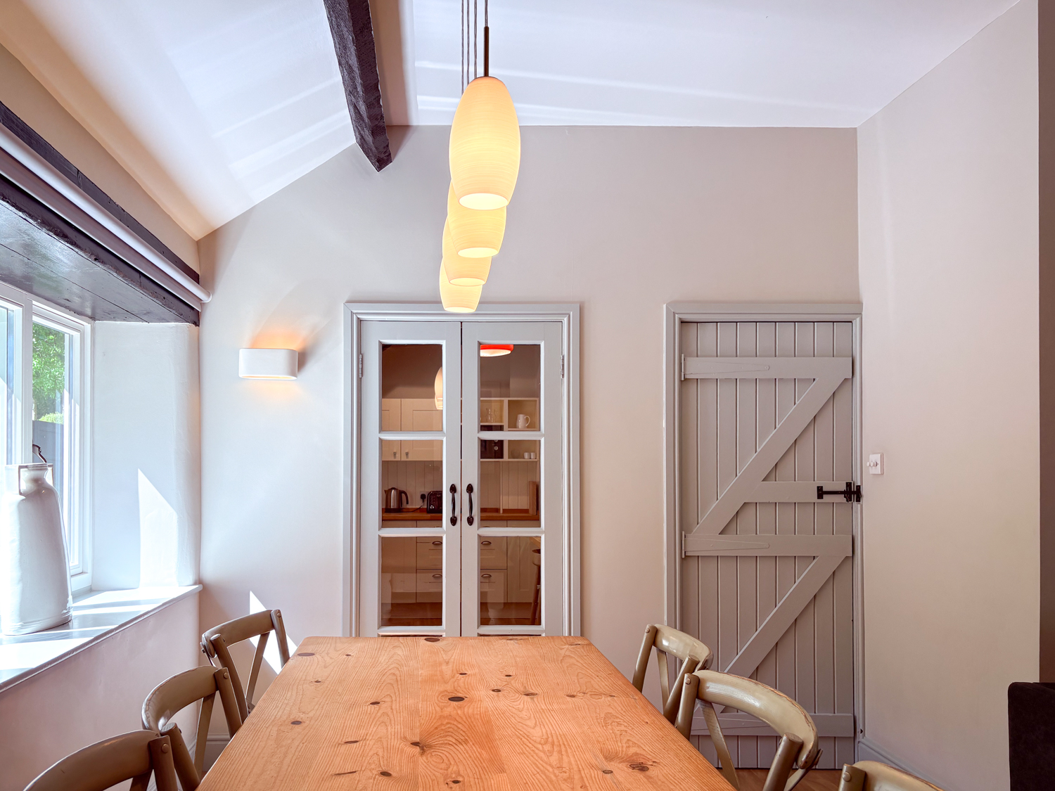 Blending contemporary furnishings and artwork with exposed beams and original brickwork, this single-storey property is full of character. The open-plan living and dining room comfortably seats six, featuring a Smart TV and large table for relaxed meals together.