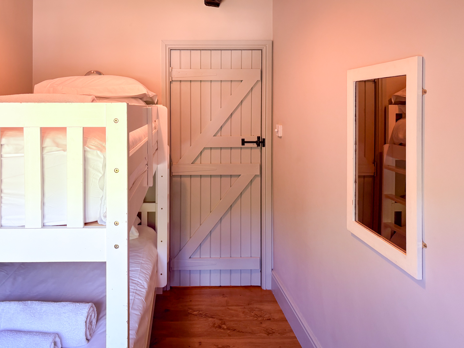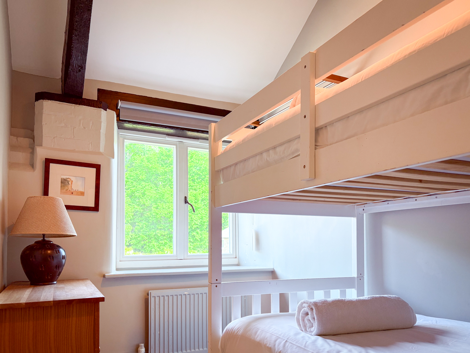 The master bedroom includes a super king-size bed and Smart TV, while the twin room offers zip-and-link beds for flexibility, and a bunk room is perfect for children. There are two modern bathrooms; one with a bath with shower head, designer fittings, basin, and WC; the second with a power shower, WC, and basin.