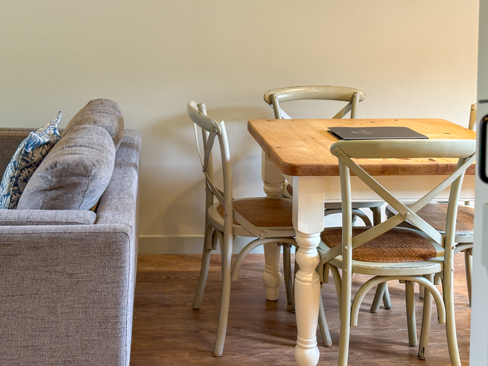 Enjoy an enclosed lawn, private patio, and outdoor dining area — perfect for warm days and evenings in the countryside. Guests can also enjoy full access to Greenwood Grange’s communal gardens, hot tubs, and outdoor leisure areas (See Estate Map).